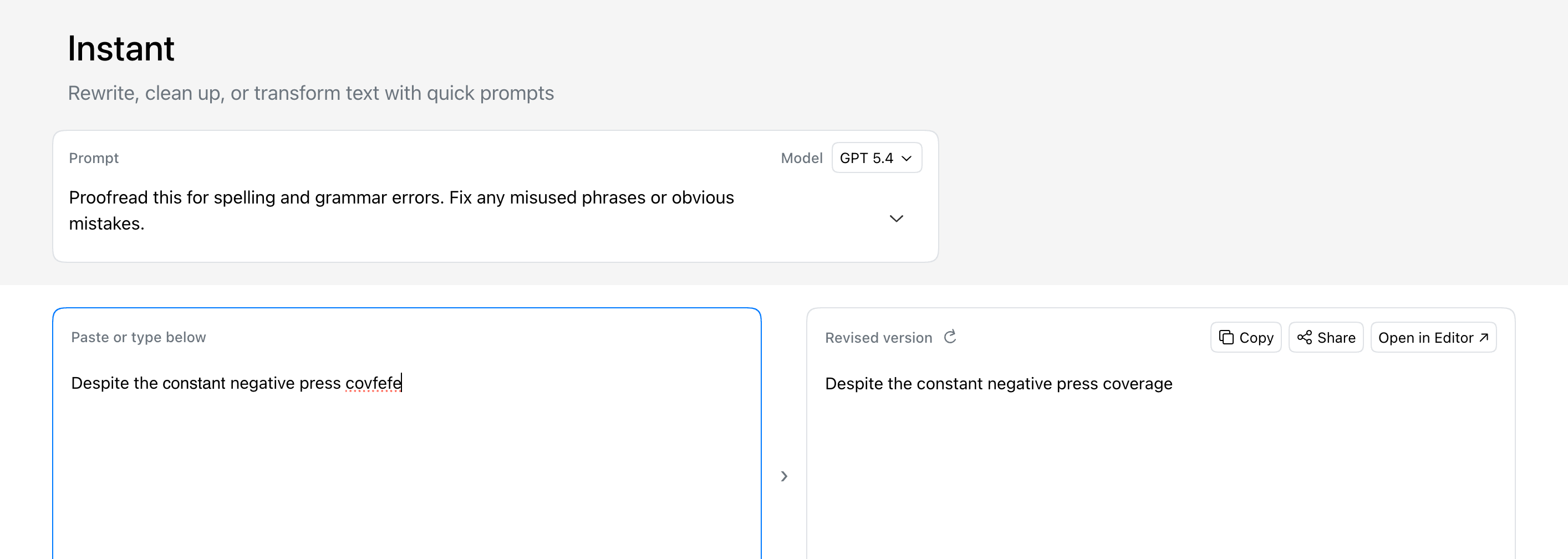 We just launched Revise Instant: a faster way to rewrite, clean up, summarize, translate, and transform text without opening the full editor first.