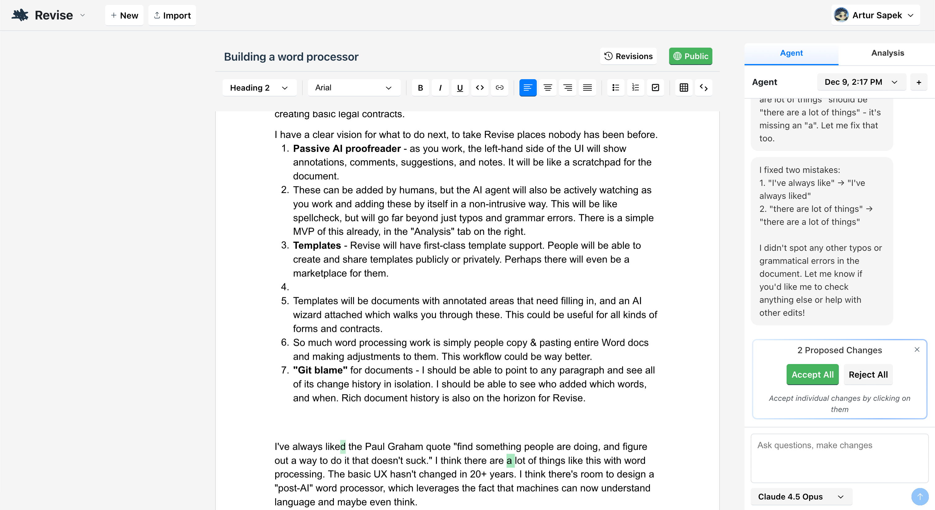 Revise is a docs application with a powerful AI agent and visual revision history. You can use Revise to write essays, reports, stories, or blog posts; documents can embed tables, images, or code. Revise is also collaborative, so you can invite anyone to work together in real-time.